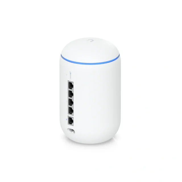 El Ubiquiti Dream Router (UDR) es una solución integral de red que combina las capacidades de una consola UniFi OS con un punto de acceso WiFi 6 de alto rendimiento, ideal para redes domésticas avanzadas. Ofrece una banda de 5 GHz con velocidades de hasta 2,4 Gbps, perfecto para actividades de alta demanda como streaming en 4K y juegos en línea. Mientras tanto, la banda de 2,4 GHz brinda 600 Mbps, perfecta para dispositivos IoT. El router incluye un puerto WAN GbE RJ45 y cuatro puertos LAN, dos de ellos con PoE, lo que permite alimentar dispositivos como cámaras de seguridad sin necesidad de adaptadores adicionales. Con 128 GB de almacenamiento interno y una ranura de expansión para tarjeta Micro SD, este router es ideal para gestionar datos y configuraciones de red de manera eficiente. Todo esto lo convierte en una opción completa y fácil de administrar para usuarios domésticos que buscan una red potente y confiable.