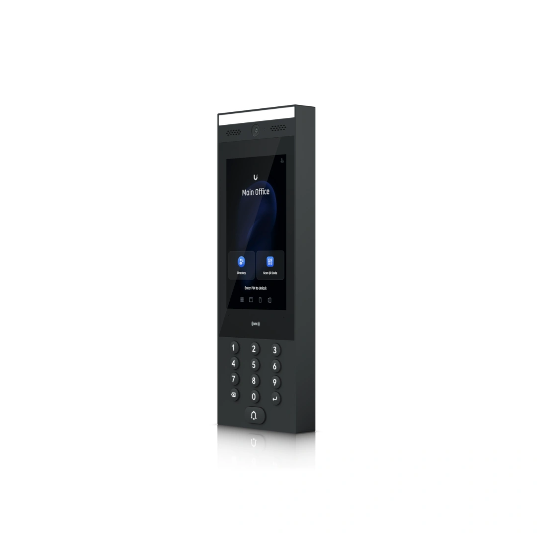 El Ubiquiti UniFi Access Intercom es un dispositivo avanzado diseñado para gestionar el control de acceso y mejorar la comunicación en edificios residenciales, oficinas y espacios comerciales. Con una pantalla táctil de 7 pulgadas, micrófono y altavoces integrados, este intercomunicador permite la comunicación bidireccional en tiempo real y el control remoto de puertas a través de la plataforma UniFi Access. Su diseño elegante y robusto, con certificación IP65, garantiza resistencia a las inclemencias del tiempo, haciéndolo ideal para aplicaciones exteriores y entornos de alto tráfico.