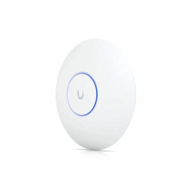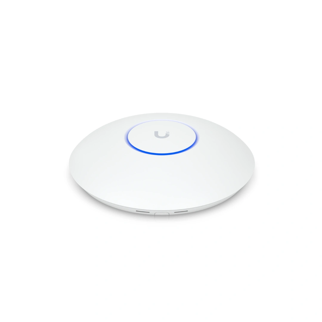 El Ubiquiti U7-PRO Access Point ofrece WiFi 7 de alta velocidad en la banda de 6 GHz, con cobertura eficiente para más de 300 dispositivos, ideal para entornos de alta densidad. Su instalación con PoE+ y enlace de 2,5 GbE garantiza transmisión rápida y sin interrupciones.